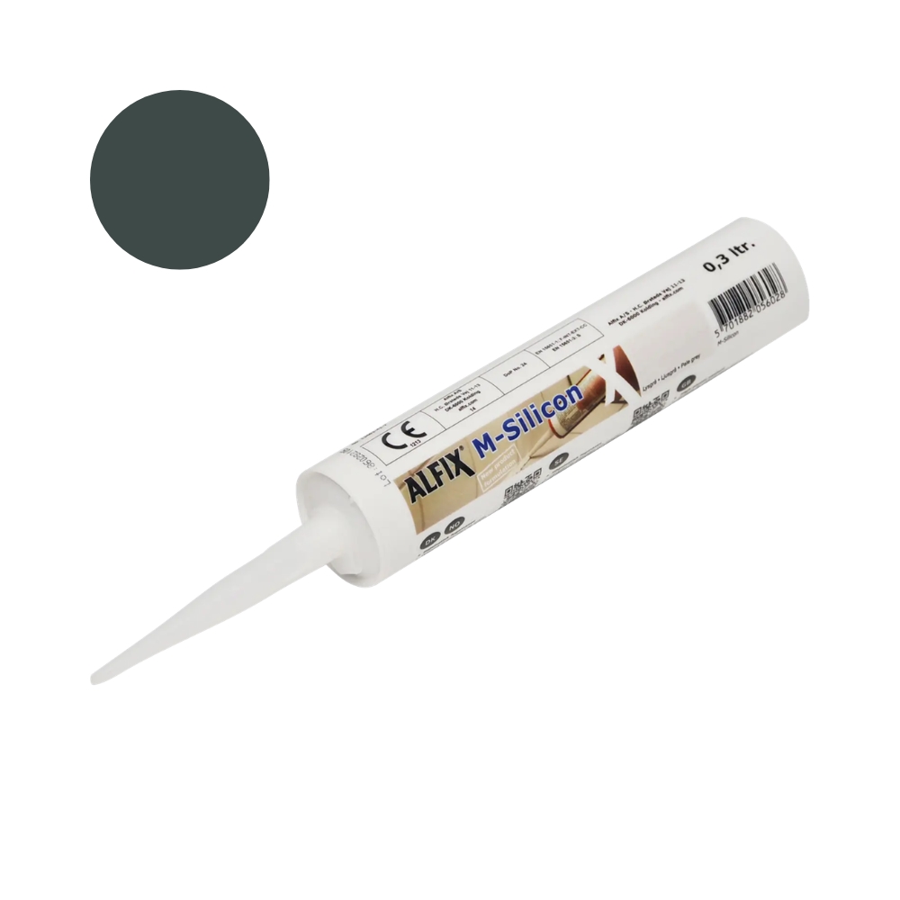 Alfix M-Silicon er en højelastisk 1-komponent fugemasse på basis af silicone-gummi. Svamp- og mugafvisende, misfarver ikke natursten og opnår hurtigt en klæbefri overflade.