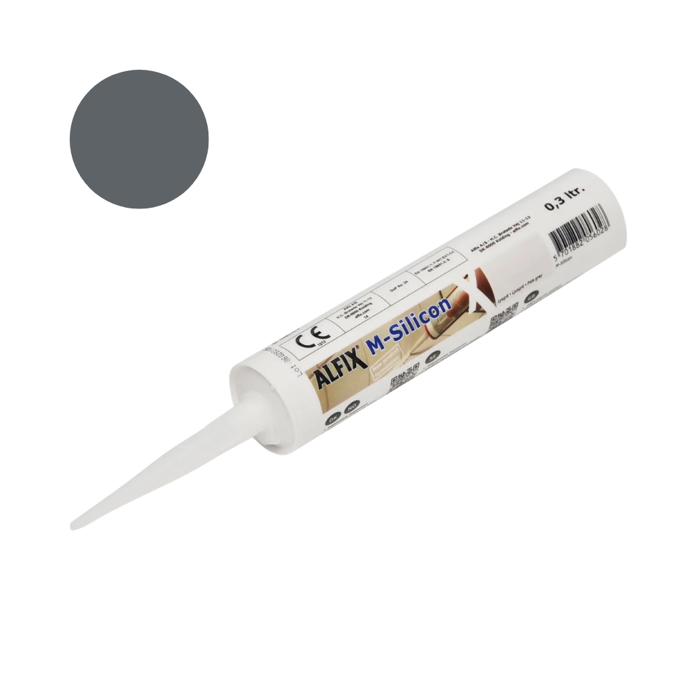 Alfix M-Silicon er en højelastisk 1-komponent fugemasse på basis af silicone-gummi. Svamp- og mugafvisende, misfarver ikke natursten og opnår hurtigt en klæbefri overflade.