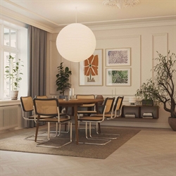 Boden er et friskt Powder White Woodura Sildebensgulv, der kombineret med den rene og harmoniske sortering giver et elegant og moderne udseende. Det perfekte gulv til et rum, hvor du ønsker et klassisk, men moderne look. Bemærk at der skal bestilles lige mange pakker A og B stave.