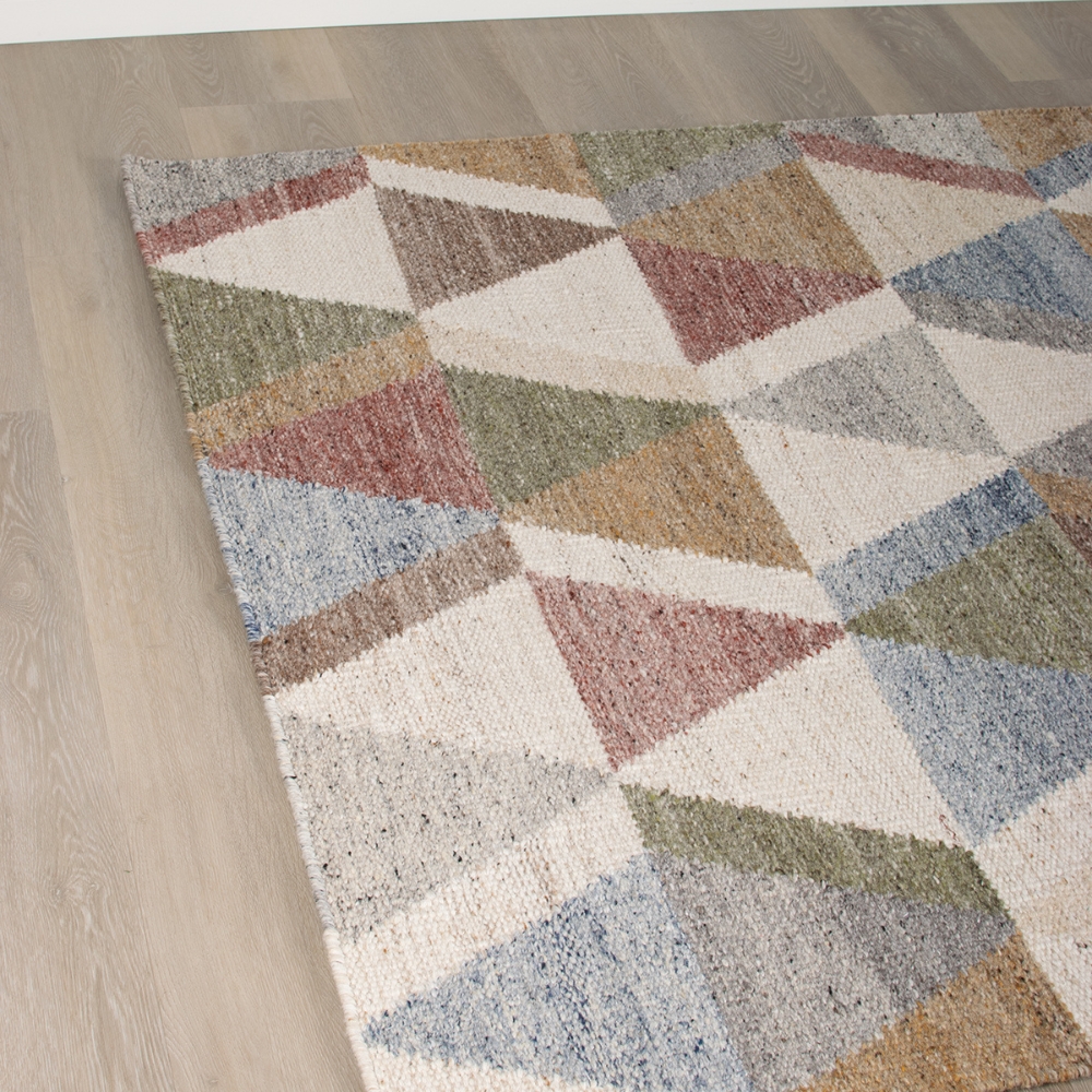 Milo er et håndvævet tæppe i uld, viskose og bomuld, skabt med et karakteristisk, geometrisk mønster, der giver rummet liv og karakter. De naturlige materialer tilføjer en behagelig struktur og et diskret spil i overfladen, som fremhæver det håndlavede udtryk. Et tæppe med personlighed og charme, der passer perfekt til både moderne og klassiske hjem.