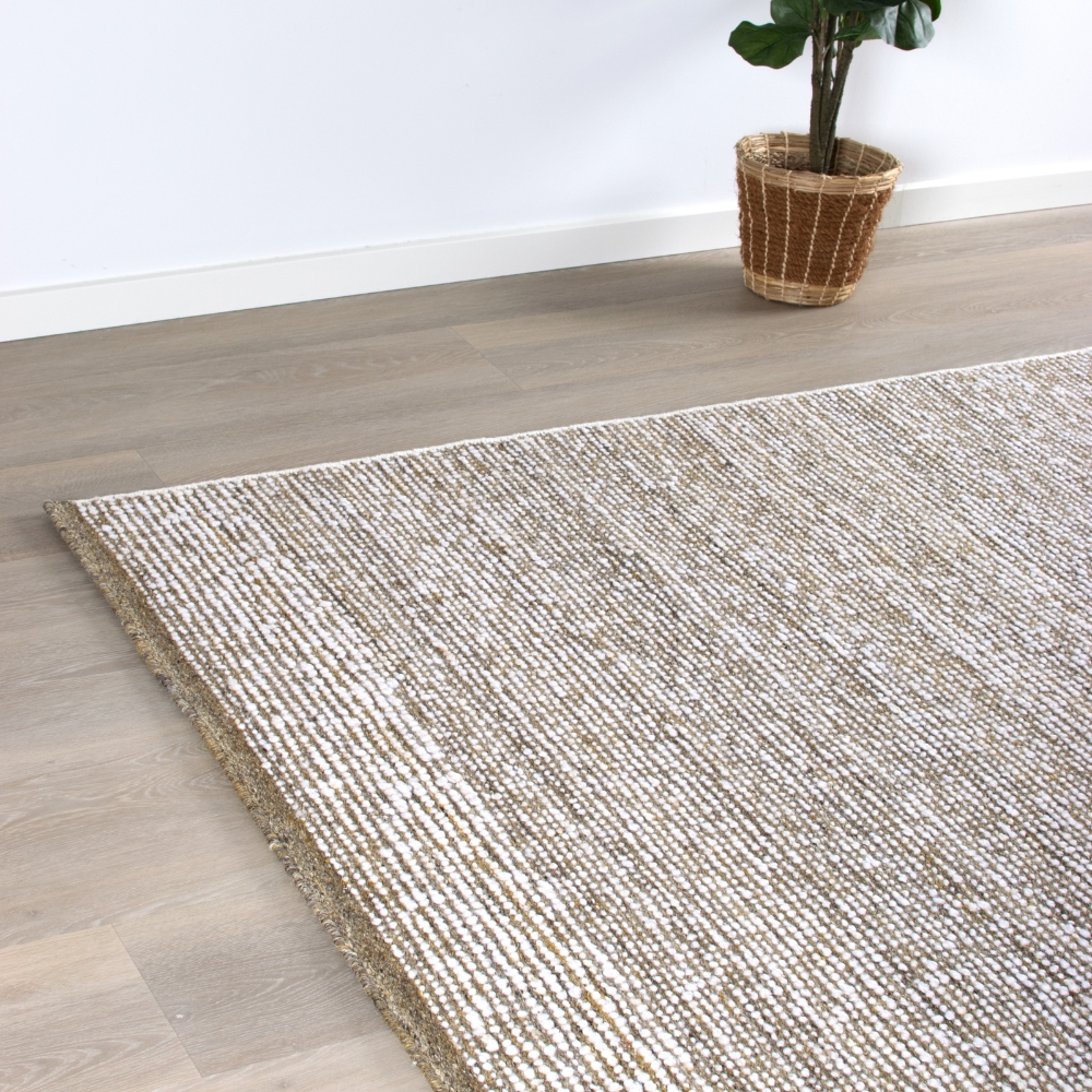 Oplev luksus og naturlig elegance med Reykjavik, et håndvævet tæppe fremstillet af naturmaterialer. Tæppets vævning giver en smuk, tekstureret overflade, der fremhæver materialernes kvalitet og håndværkets finesse.Læs mere