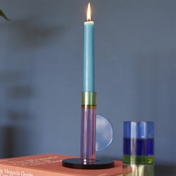 En lysestage med geometriske former og et minimalistisk udtryk vil altid tiltrække opmærksomhed. Når du tilføjer et modigt farvevalg i lyserød, lyseblå, grøn og gul, så har du en helt unik og smuk lysestage i krystalglas. At tænde levende lys, når du skal skabe en hyggelig stemning, er altid en god idé. Denne glaslysestage vil kaste lys på samtaler og gode snakke, hvad enten den indgår i din bordopdækning eller står til pynt på din skænk.