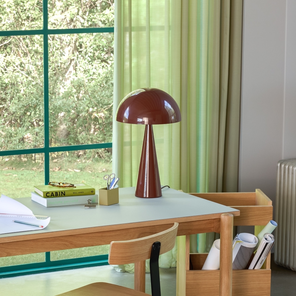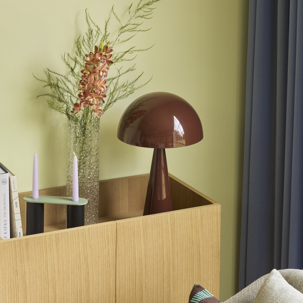 Mush Bordlampen i varm brun med en højglansfinish tilføjer øjeblikkelig charme og sofistikation til dit hjem. Uanset om den er placeret på et natbord eller arrangeret på en bogreol, skaber den et blødt, indbydende skær, der forvandler ethvert hjørne til et hyggeligt tilflugtssted.Læs mere