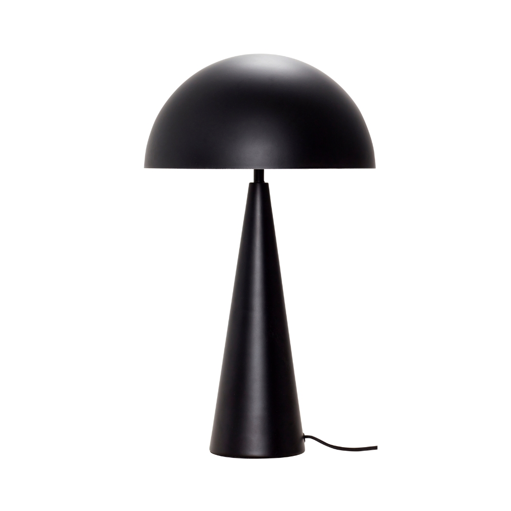 Denne bordlampe er lavet af sort metal. Lampeskærmen og den kegleformede fod skaber en svampelignende form, som understreger lampens flotte design. Du kan placer lampen på dit skrivebord, i vinduet eller på sofabordet.