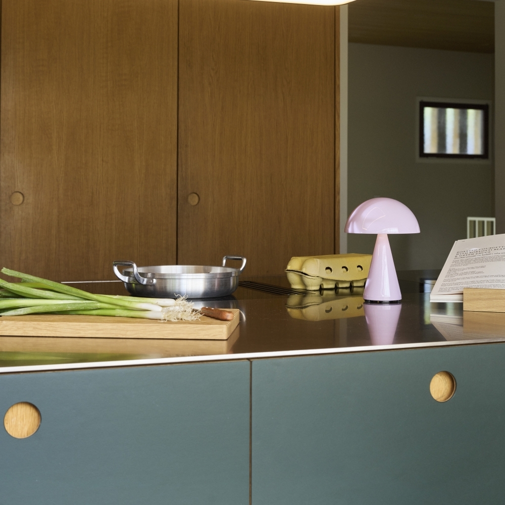 Mush Transportabel Lampe i livlig lys pink tilføjer et muntert farvesplash til dine yndlingssteder.Læs mere