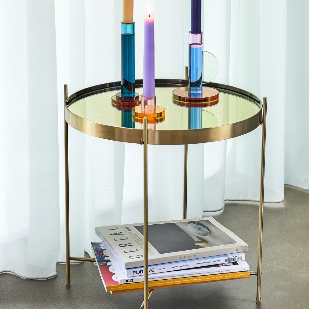 Reflect Sidebord Messingfarve er det perfekte valg til at tilføje et moderne strejf til dit hjem. Det er lavet af højkvalitets glas og metal og er en stilfuld og robust kombination, som vil vare i mange årLæs mere