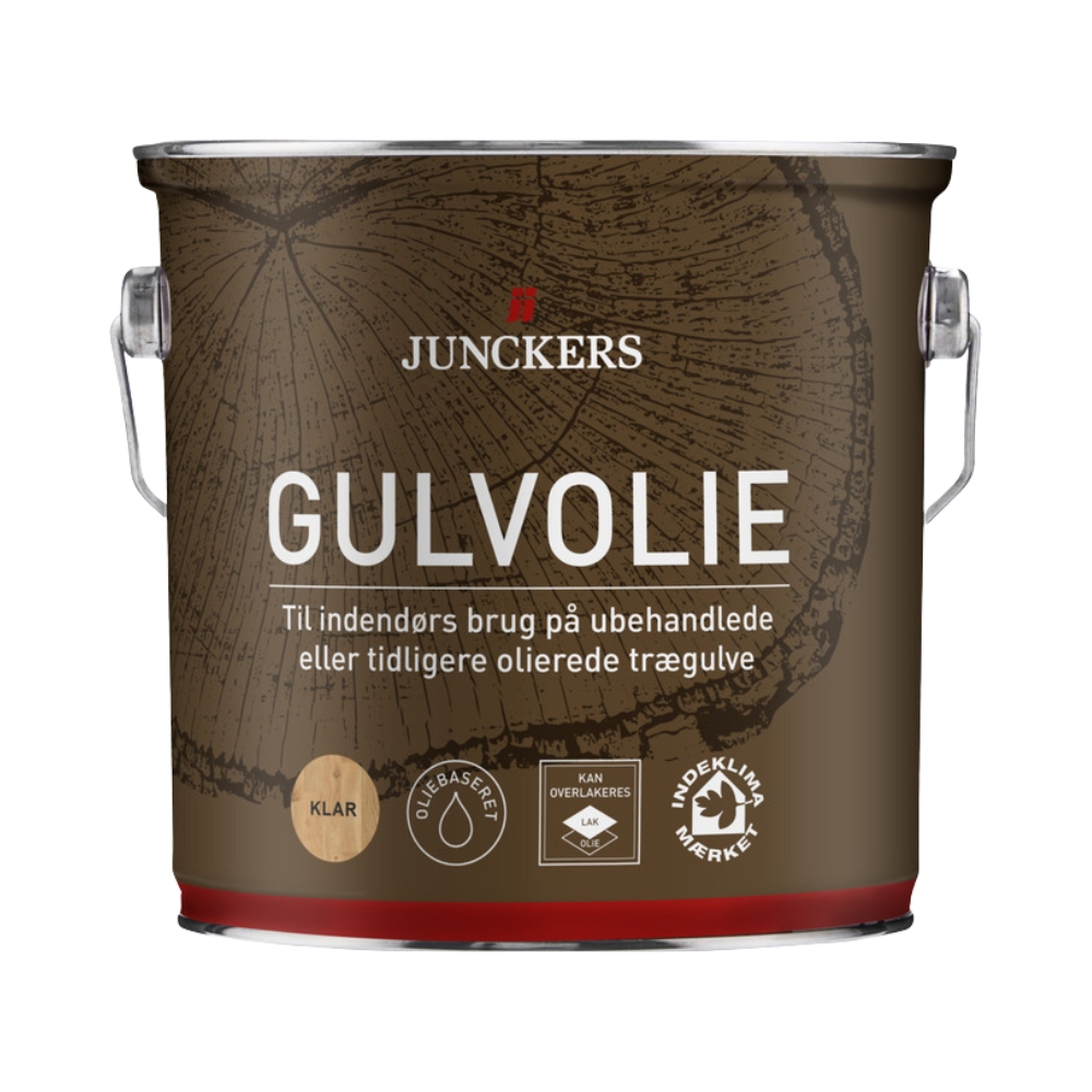 Junckers Gulvolie er en hærdende olie til behandling og vedligeholdelse af trægulve. Den kan anvendes til både grunding og færdigoliering af ubehandlede gulve samt gulve, der tidligere er oliebehandlet. Med sin hvide pigmentering lysner olien træets naturlige farve og skaber et hvidskuret udseende, samtidig med at træets åretegning fremhæves.