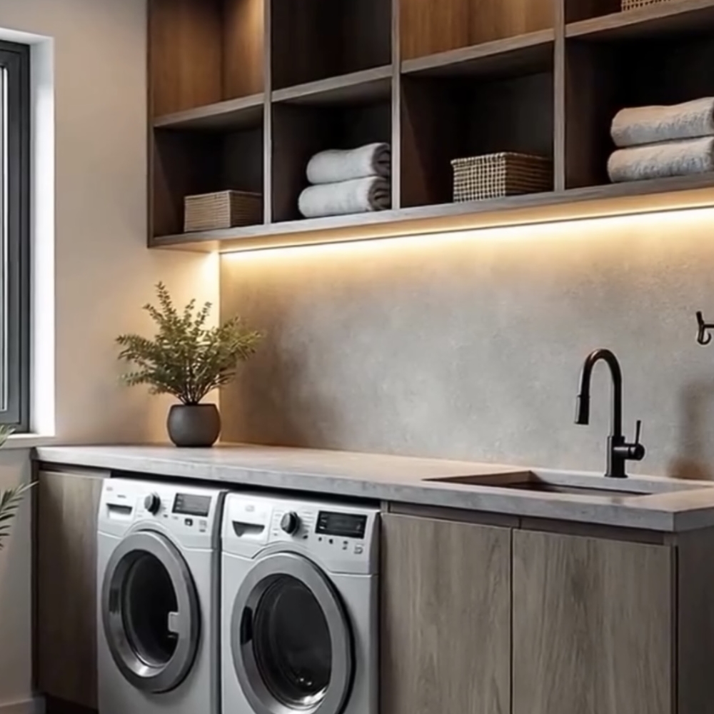Panelerne er 100 % vandfaste, genanvendelige og kan bruges på mange måder – som vægbeklædning, gulvbelægning eller endda som en stilfuld bordplade i køkkenet.